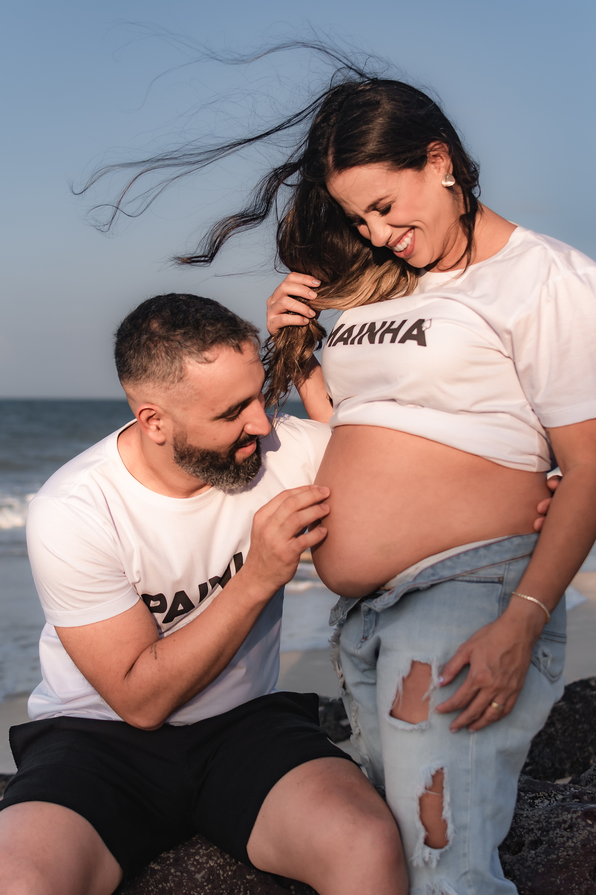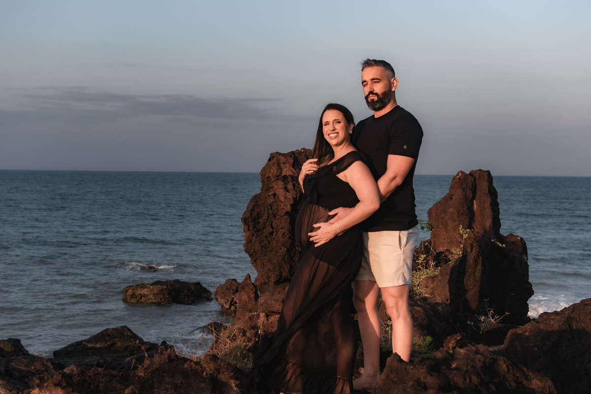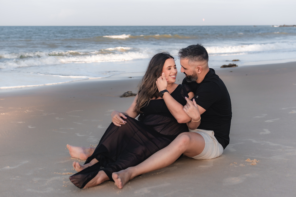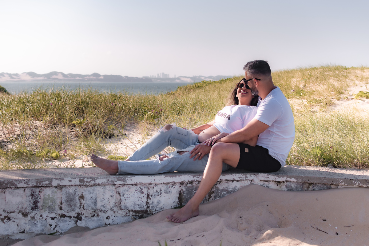 Existem lugares que não precisam de explicação. Estar neles já basta para entender o que representam. Para esse casal, essa praia é mais do que cenário: é memória, encontro, abrigo e promessa. Nessa praia tantas histórias aconteceram e, agora, é também onde eles escolheram celebrar a chegada da filha.