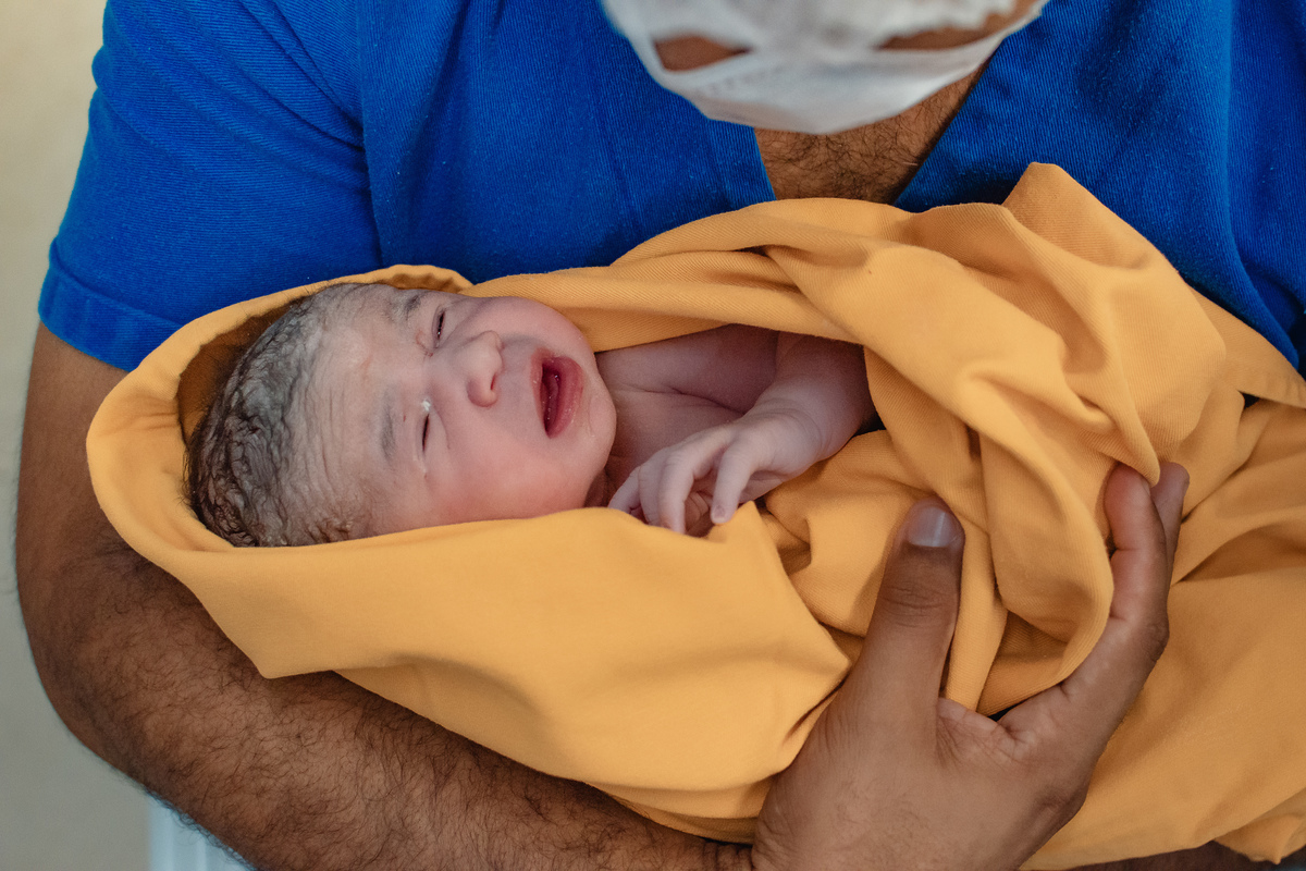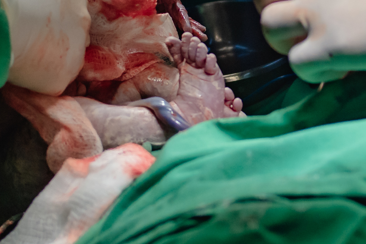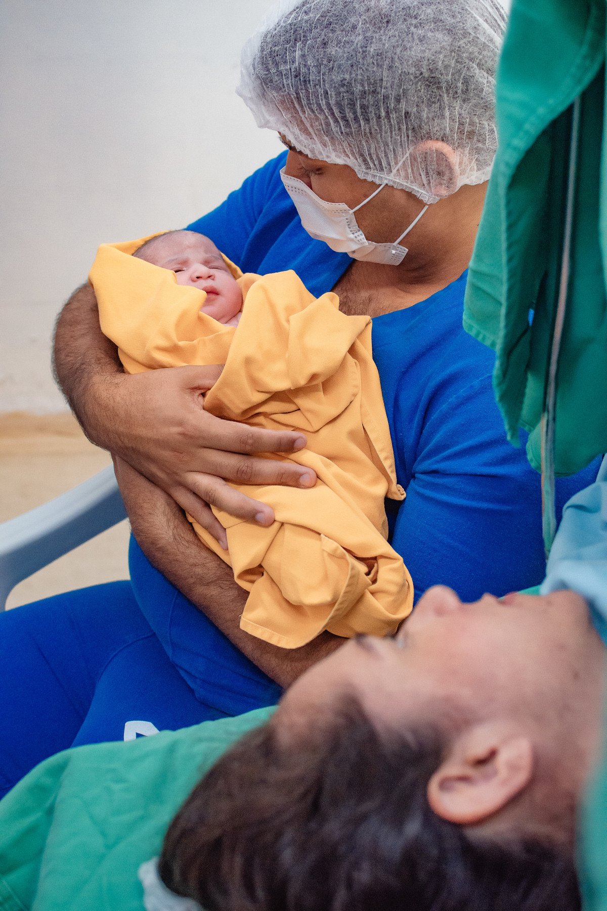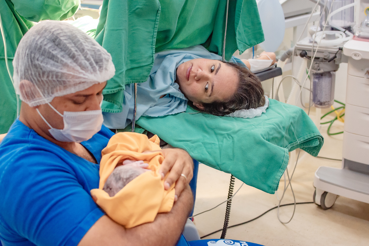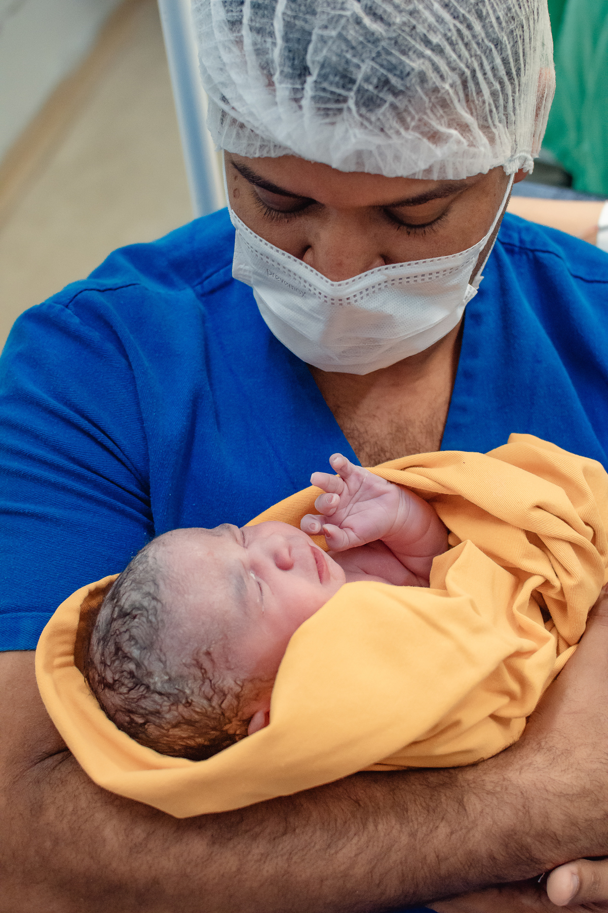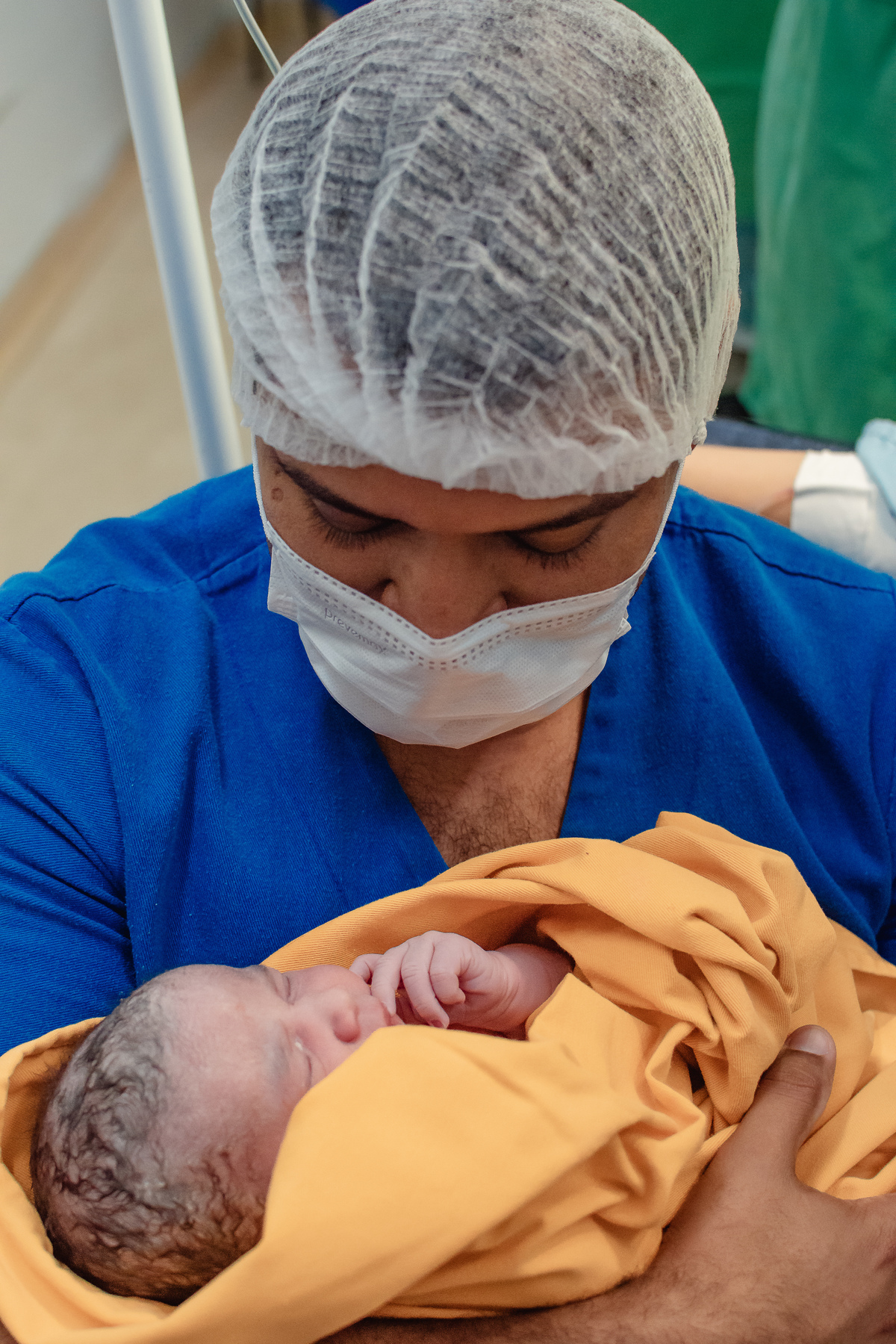 Já no hospital, em uma unidade onde o meu trabalho também exigiu adaptação ao espaço e ao fluxo, o nascimento acabou acontecendo por meio de uma cesariana.