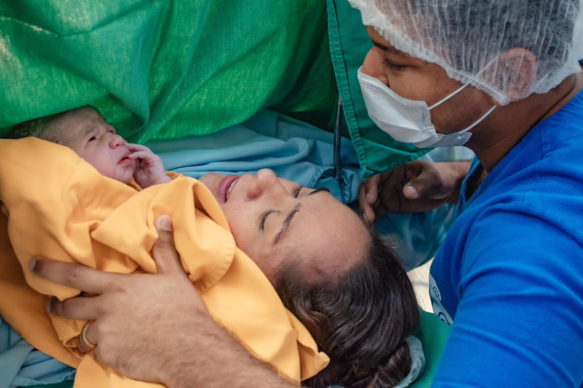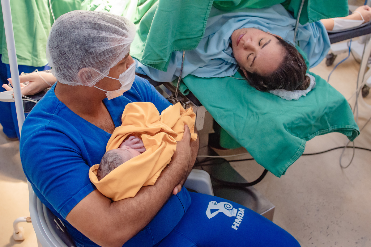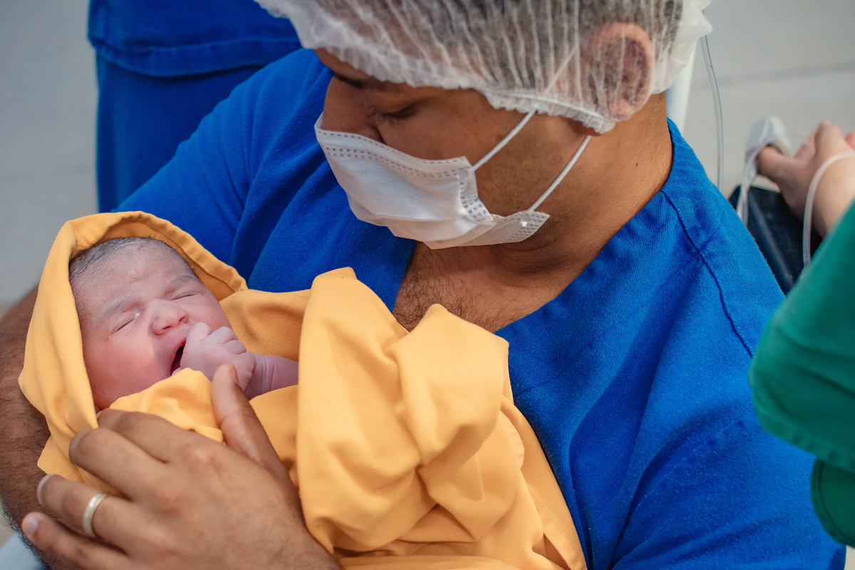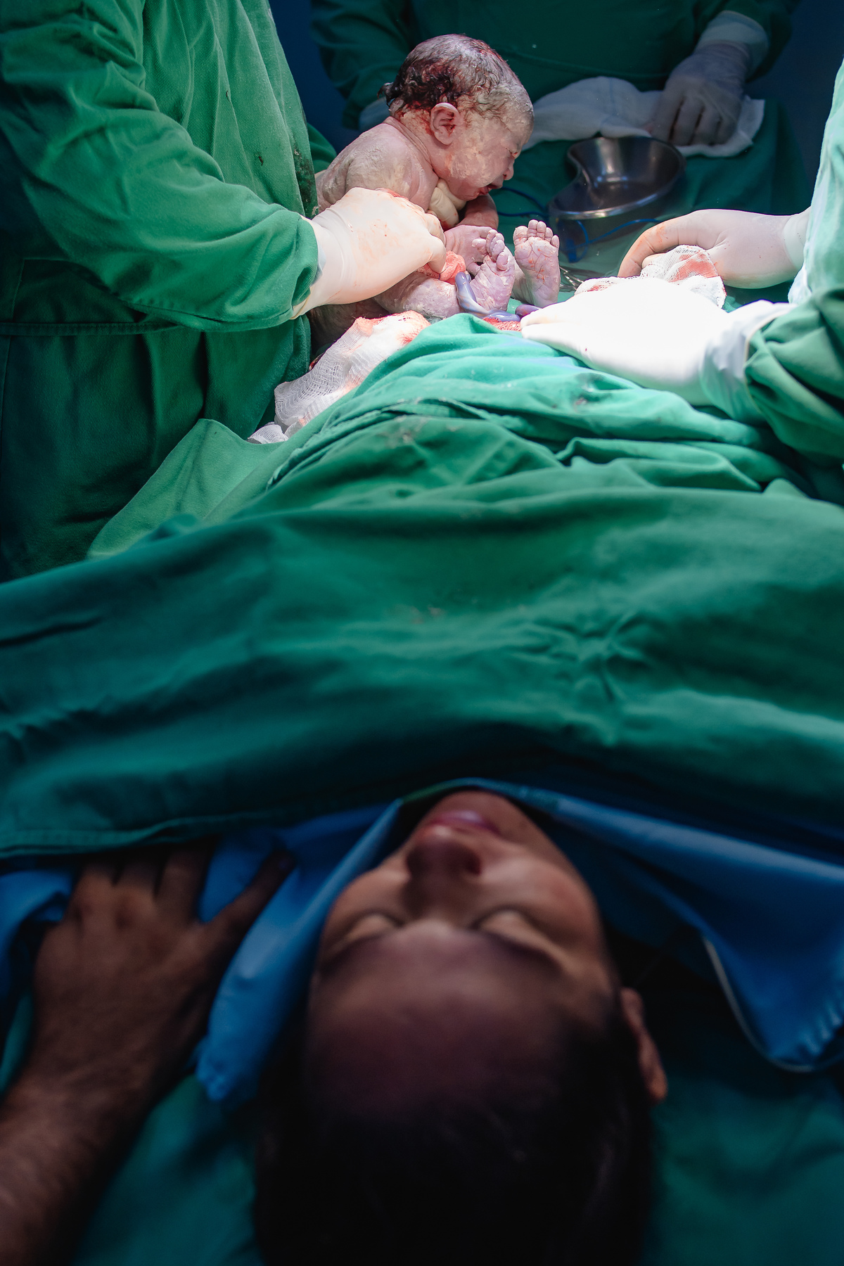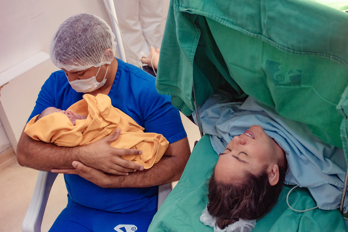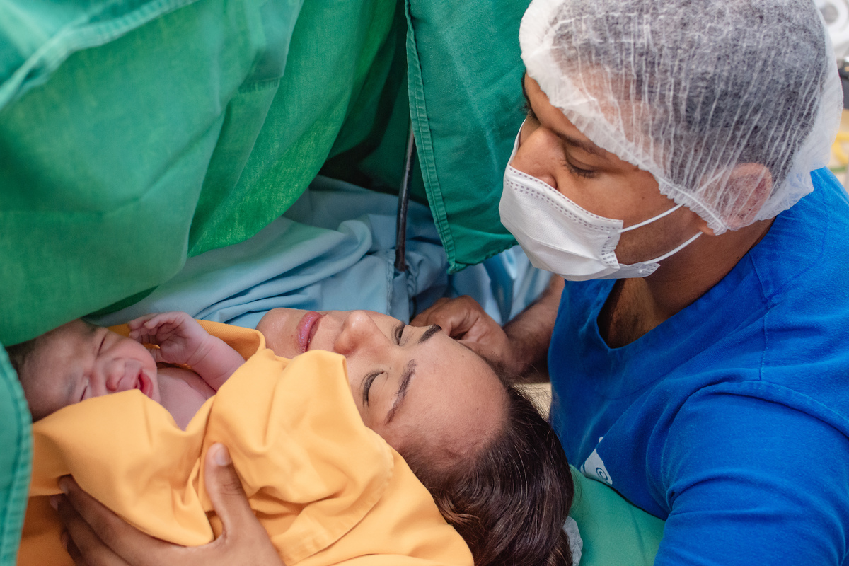 Já no hospital, em uma unidade onde o meu trabalho também exigiu adaptação ao espaço e ao fluxo, o nascimento acabou acontecendo por meio de uma cesariana.