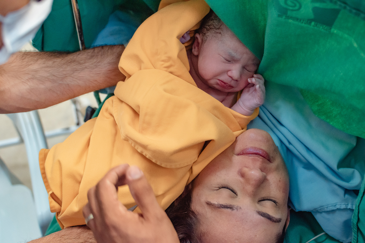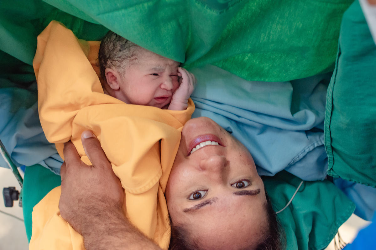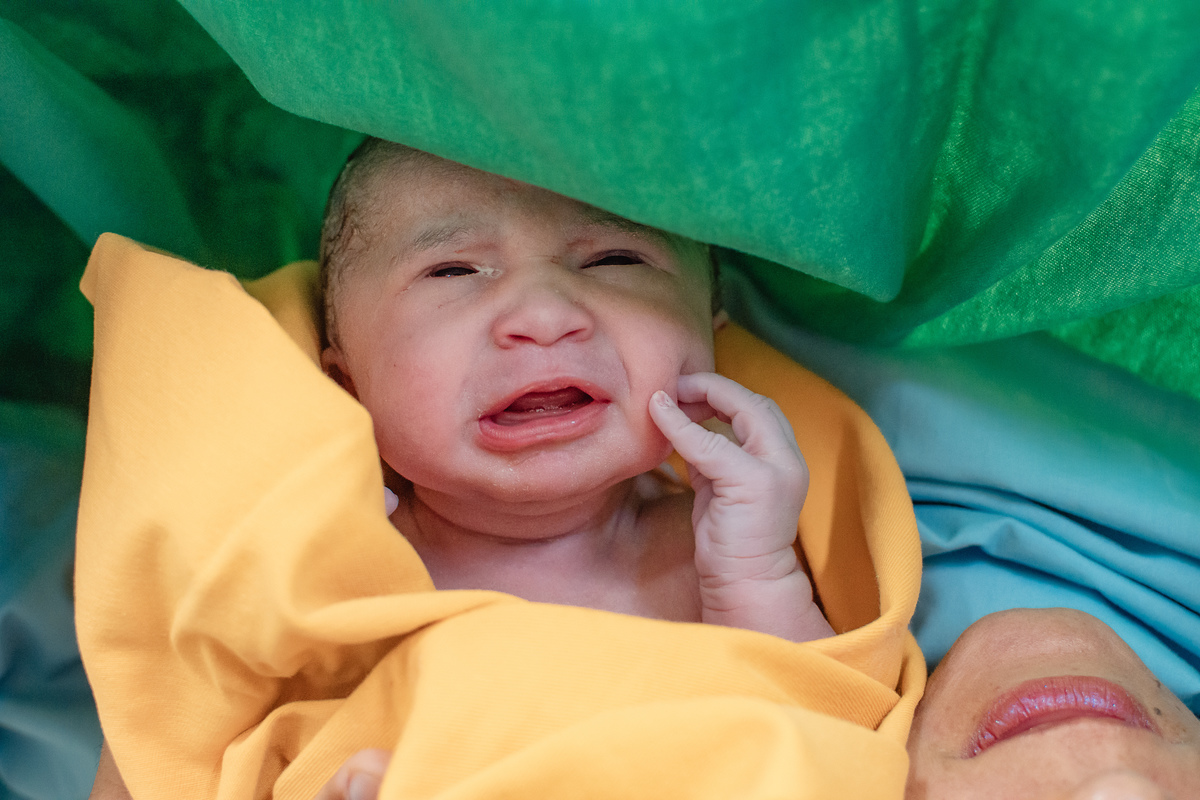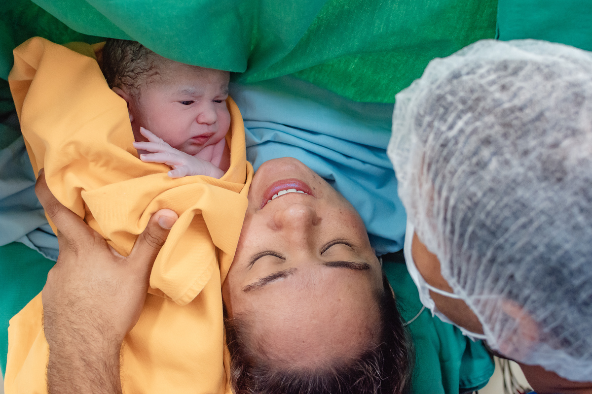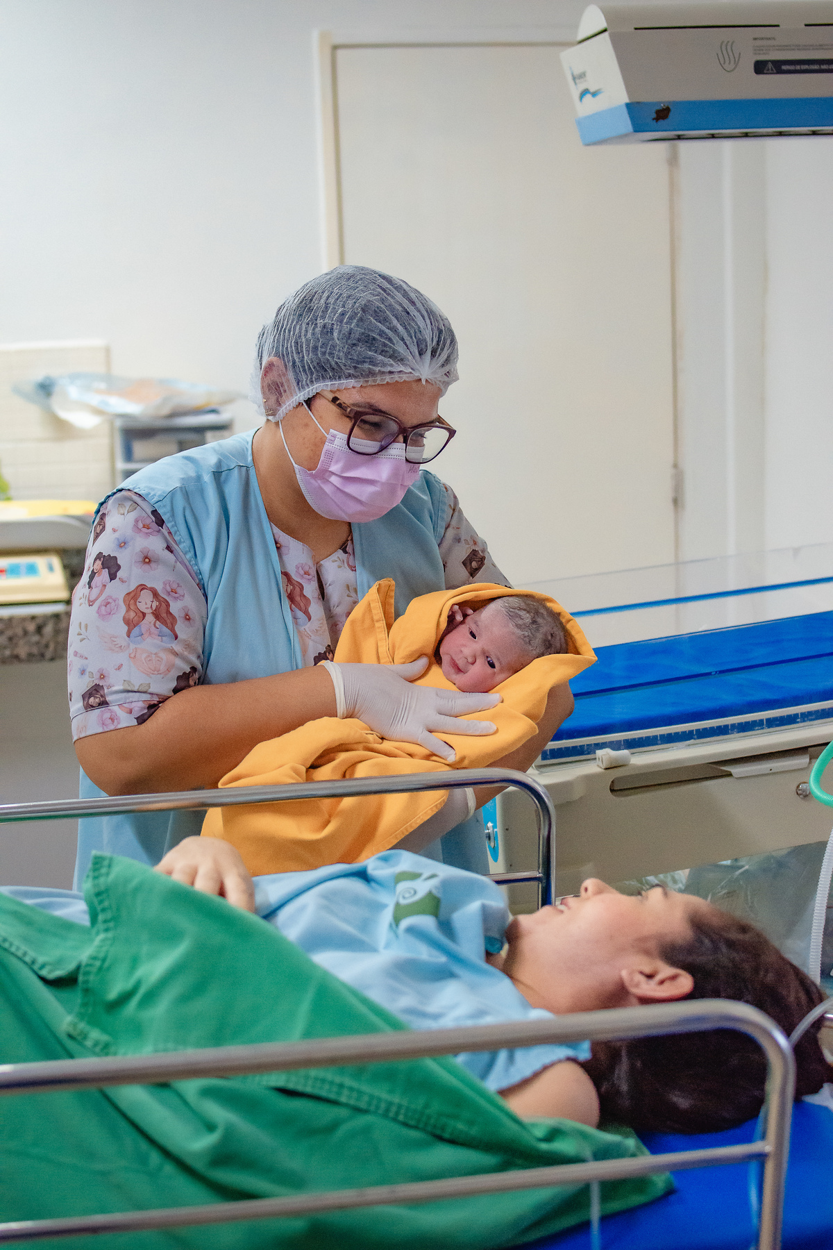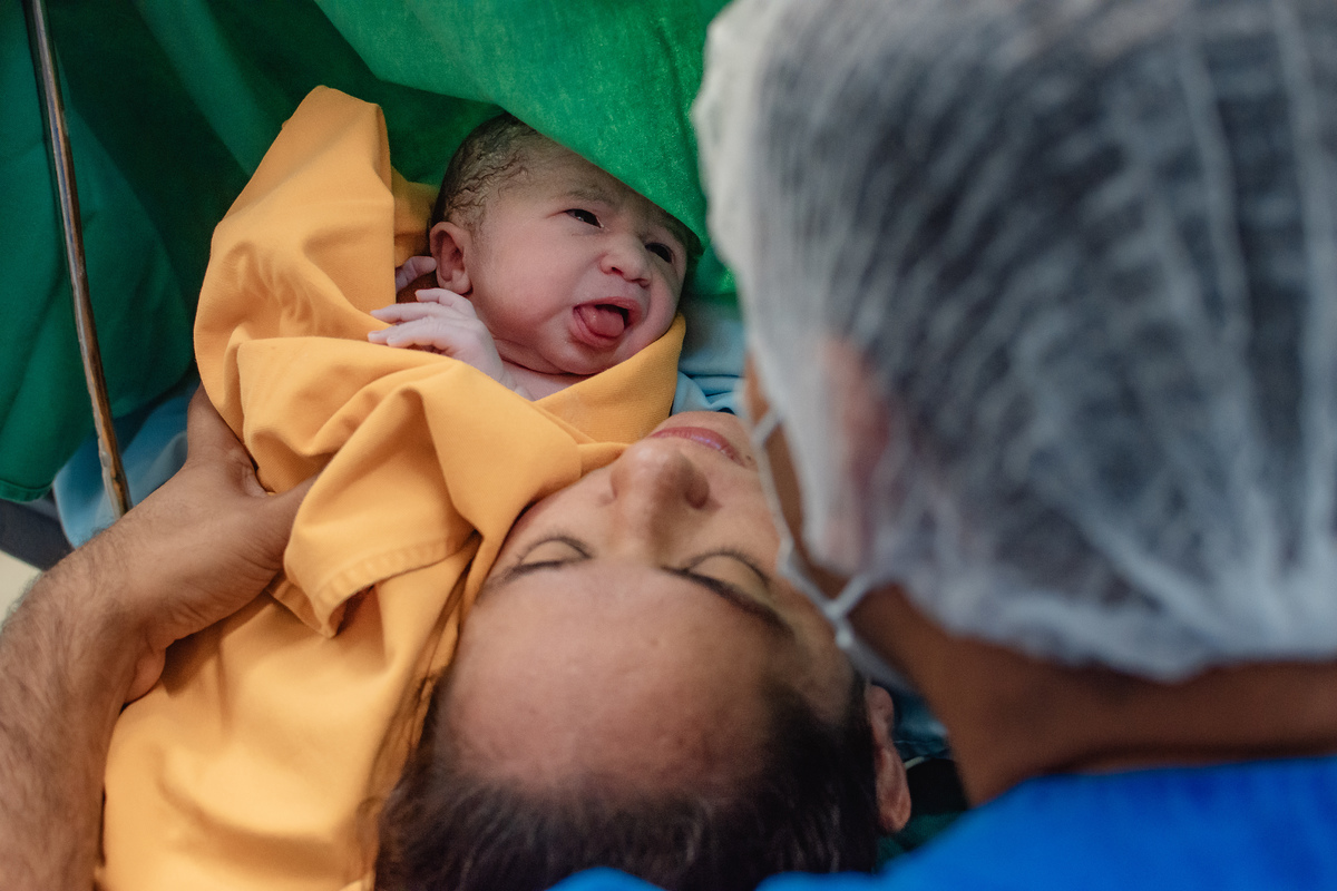 Já no hospital, em uma unidade onde o meu trabalho também exigiu adaptação ao espaço e ao fluxo, o nascimento acabou acontecendo por meio de uma cesariana.