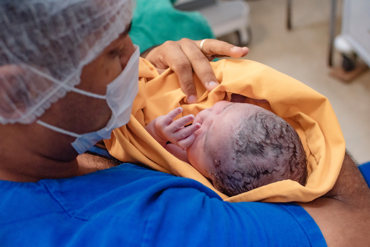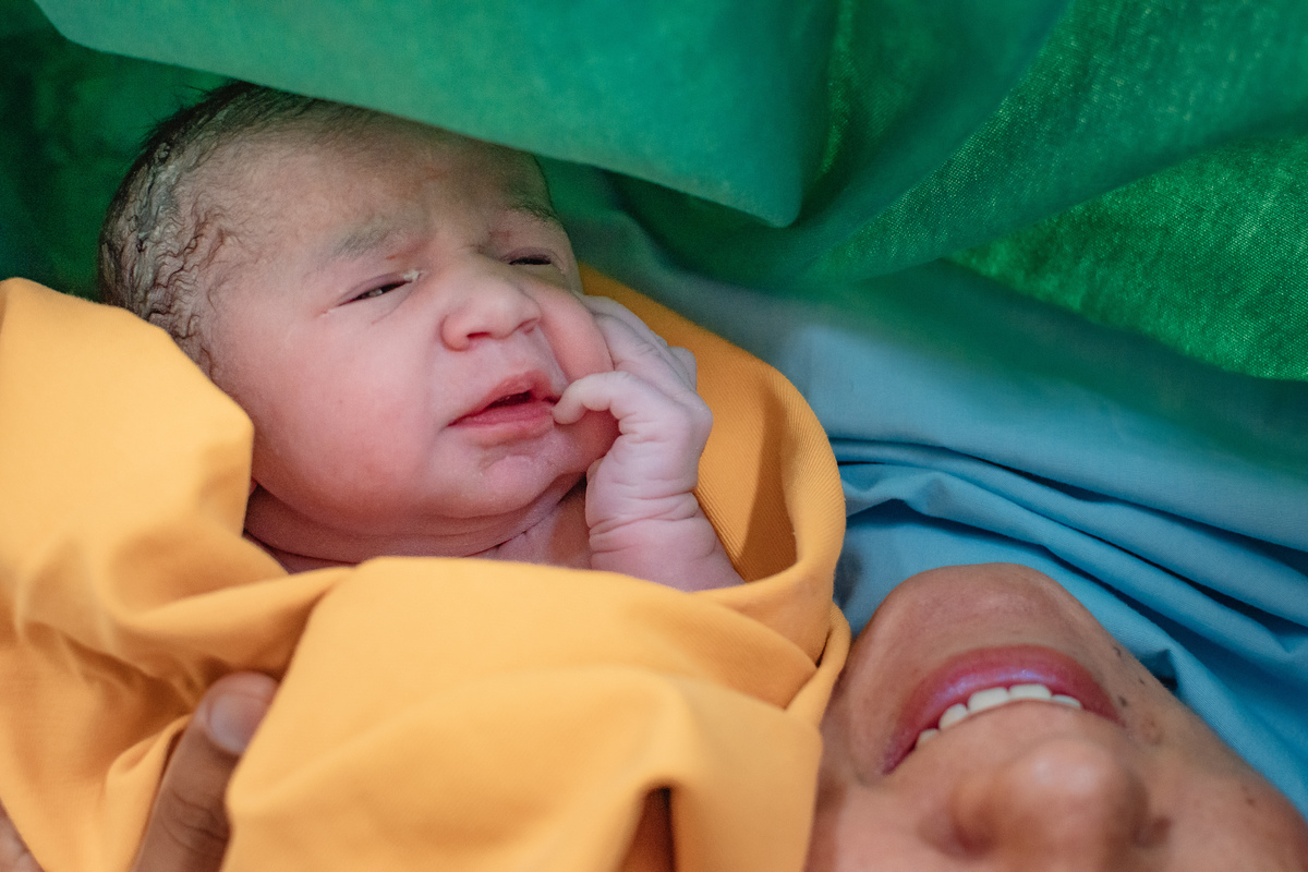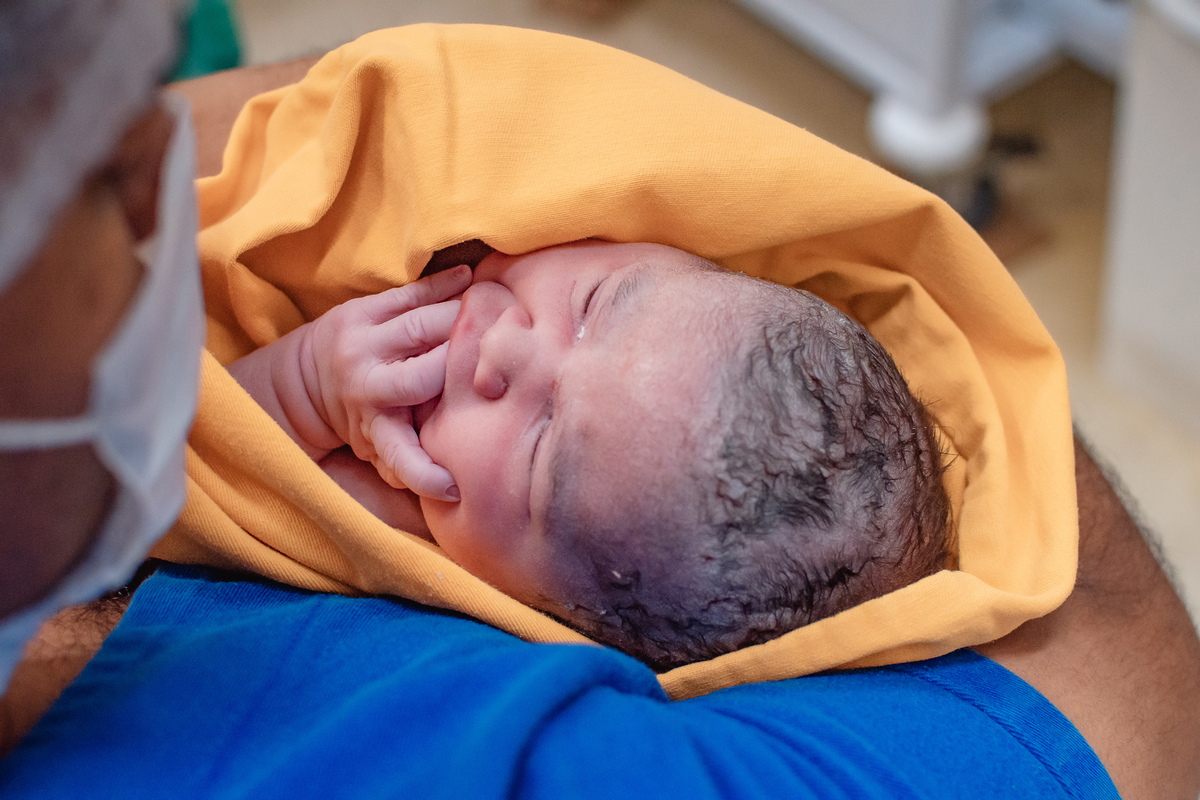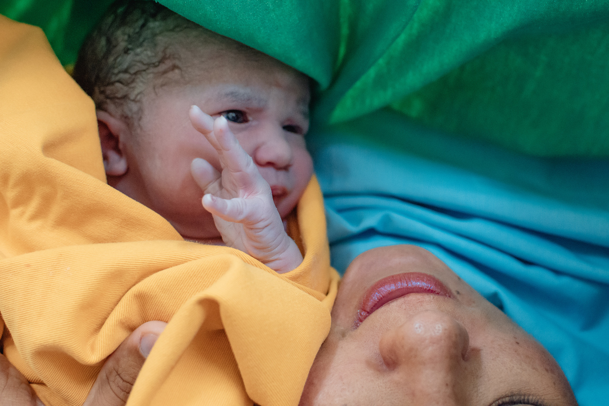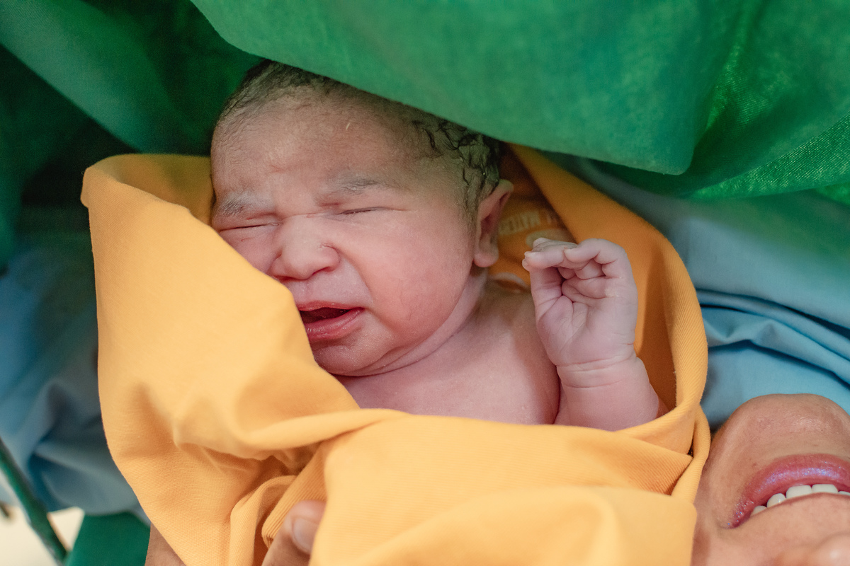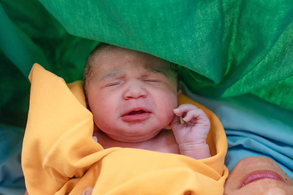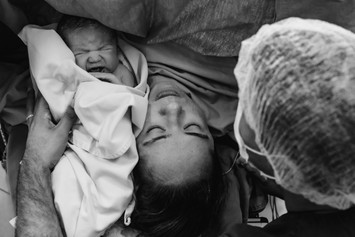 Já no hospital, em uma unidade onde o meu trabalho também exigiu adaptação ao espaço e ao fluxo, o nascimento acabou acontecendo por meio de uma cesariana.