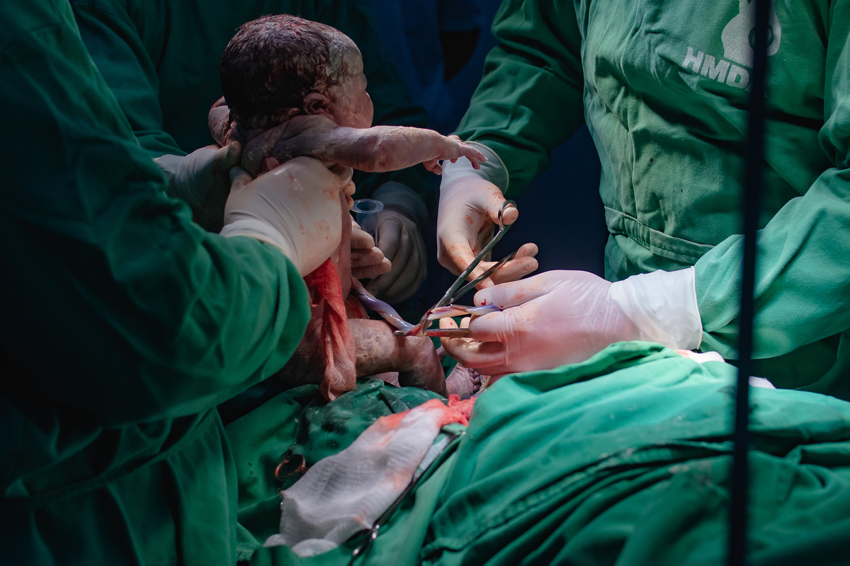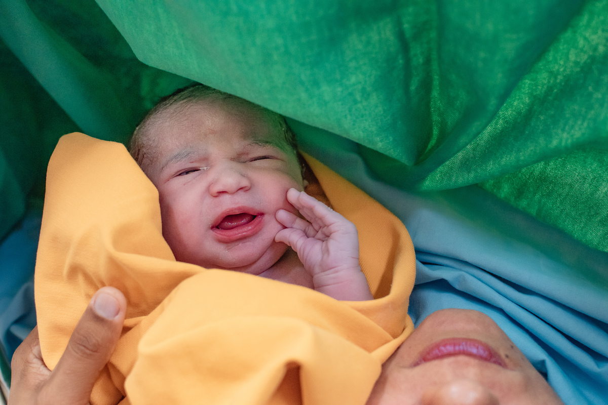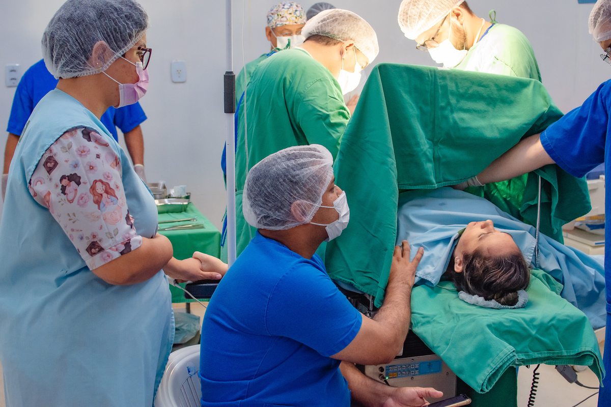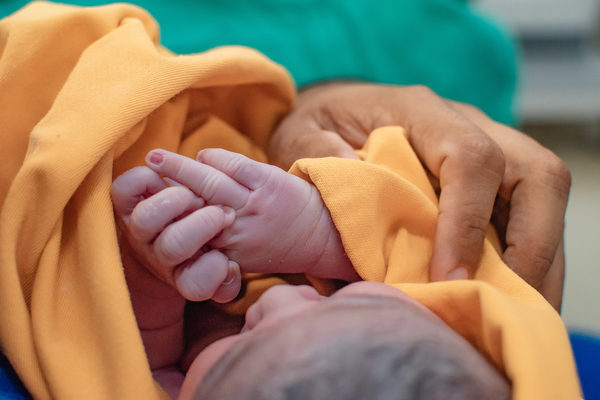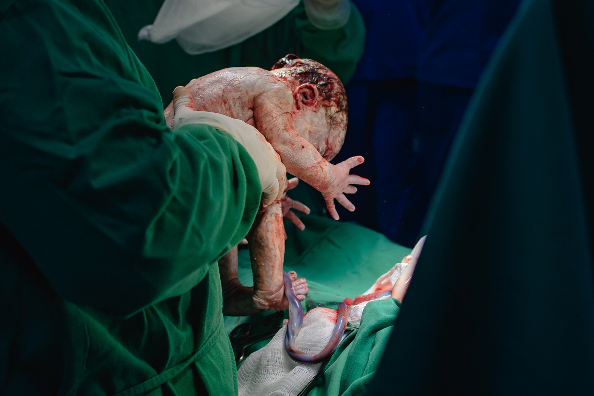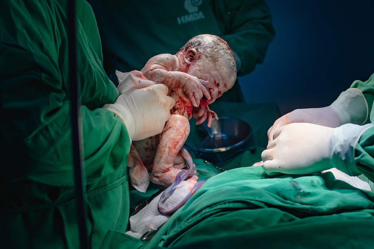 Já no hospital, em uma unidade onde o meu trabalho também exigiu adaptação ao espaço e ao fluxo, o nascimento acabou acontecendo por meio de uma cesariana.