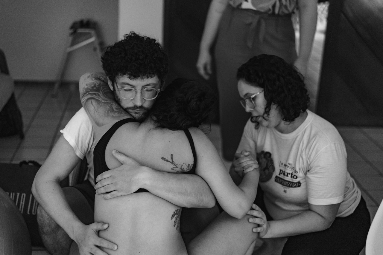 PDP assistido por doula e enfermeiras, e acompanhado pelo pai.