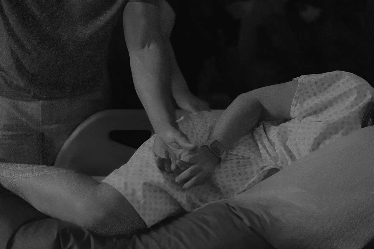 Detalhe do suporte do pai durante trabalho de parto, demonstrado através das mãos dadas. (Foto por André Pontes)
