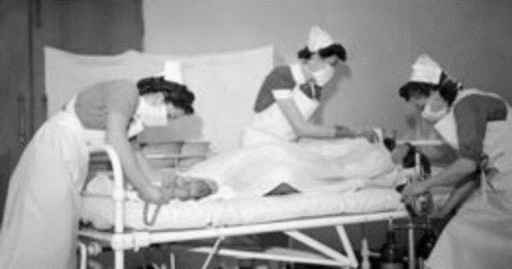 Essa foto mostra uma prática que era norma e hoje sabemos que é uma forma de violência contra a pessoa em trabalho de parto. A mulher com mãos e pernas contidas, que resultavam em muitos hematomas e machucados em decorrência dessa contenção. (Créditos: Site baby Gaga: 13 Birth Practices From 100 Years Ago That Are Scary AF).