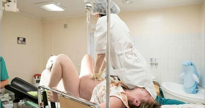 Exemplo de Manobra de Kristeller, considerada Violência Obstétrica que apresenta muitos riscos à saúde do bebê e da mãe. Além de mostrar a mãe desacompanhada neste momento. (Créditos da imagem: Lieve Blancquaert/OMS)