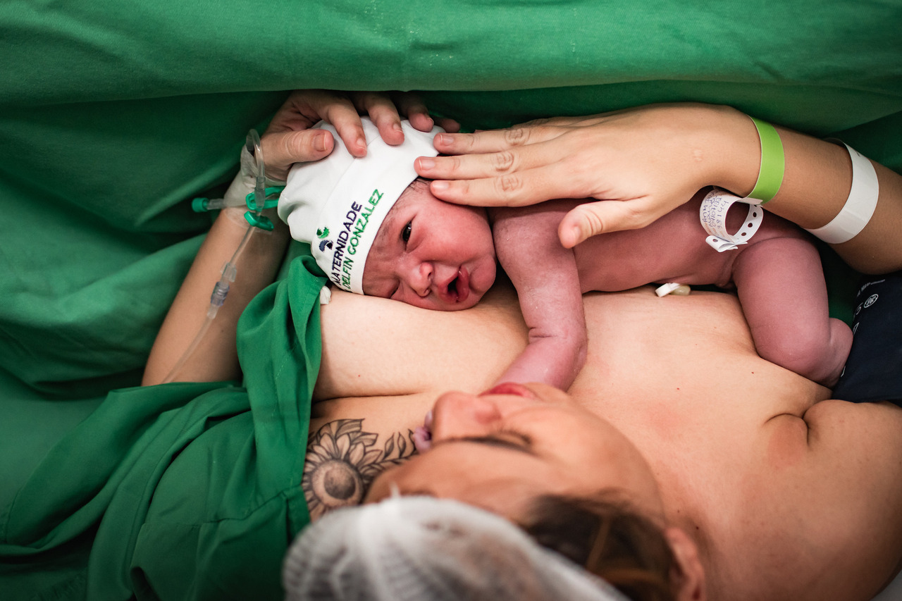 As três fotos acima mostram bebês nos colos de suas mães que precisaram ser levadas a uma cirurgia cesariana. De forma respeitosa e acolhedora, e em segurança, esses bebês foram colocados nos colos de suas mães, e essas fotos mostram toda a ternura e amor envolvidos neste momento. (Fotos por André Pontes)